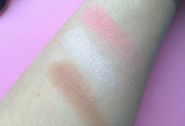 Выводы: всеми тремя продуктами из палетки я довольна, пользуюсь в удовольствие! Пигментация, текстура, финиш, оттенки - все оцениваю на 5 баллов. Однозначно рекомендую к покупке новичкам в макияже, т.к. многофункциональная, подобранная по оттенкам палетка - идеальный вариант для того, чтобы не морочить себе голову поисками "идеального скульптора/хайлайтера/румян". Для опытных барышень палетка также будет интересна хотя бы румянами (если Вы еще не пробовали этот оттенок - бегите покупать!).