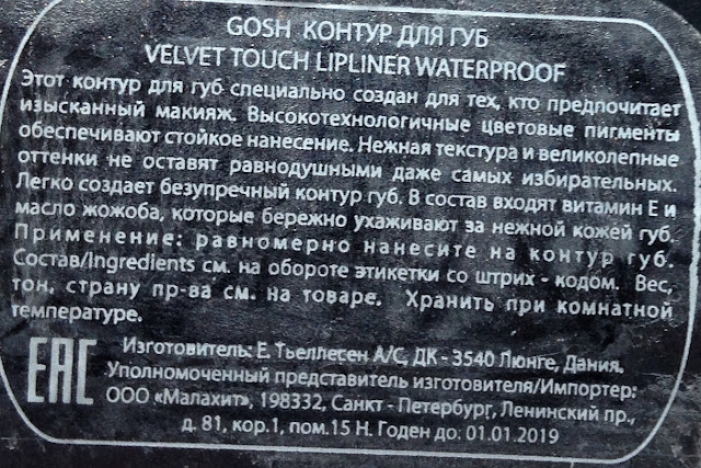 GOSH Velvet Touch Lipliner Waterproof - идеальное дополнение к линейке помад Velvet Touch.