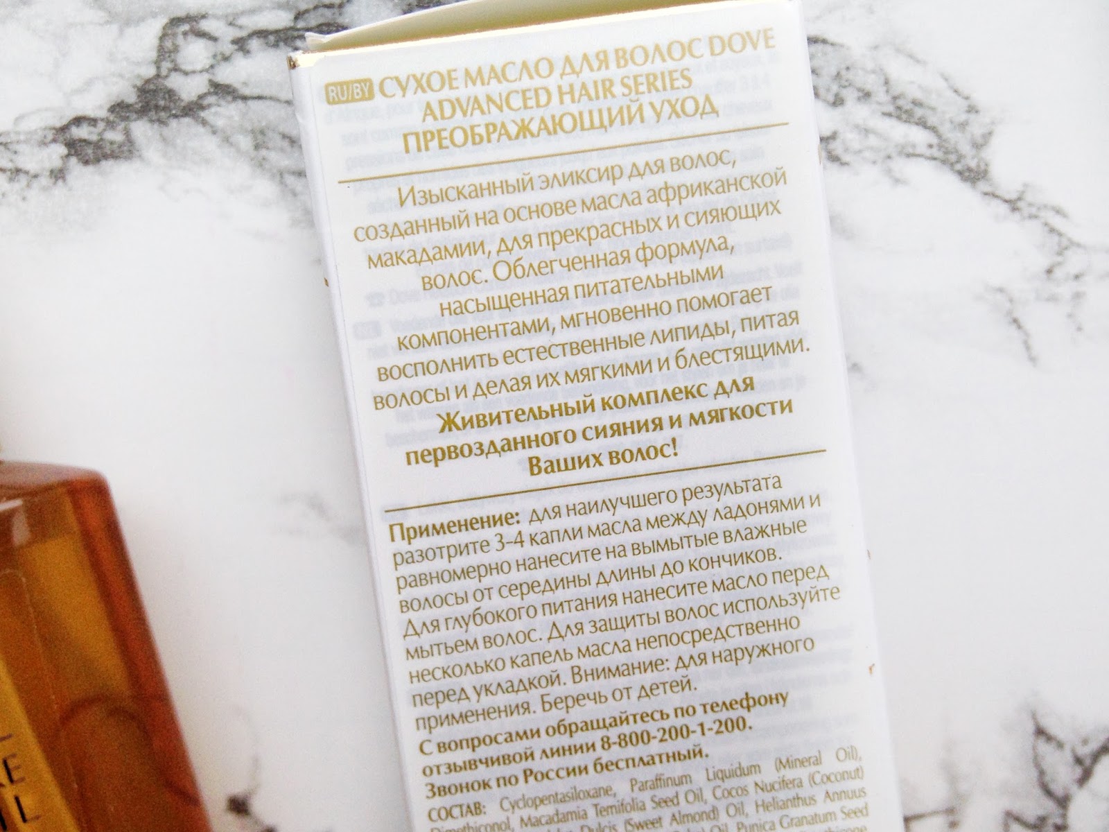 3. Dove Pure Care Dry Oil. Сухое масло для волос преображающий уход.