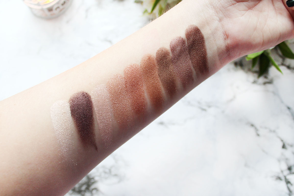 9 оттенков теней в каждой палетке для создания классического нюдового макияжа глаз. Каждая палетка включает 2 оттенка: Light и Sculpt (в каждой палетке разные!) для скульптурирования века. Тени, на мое глубокое удивление, оказались ооочень пигментированными (на фото нанесены БЕЗ базы и в один слой!). При наборе на кисть чуть пылят, при нанесении осыпаются, но не критично.